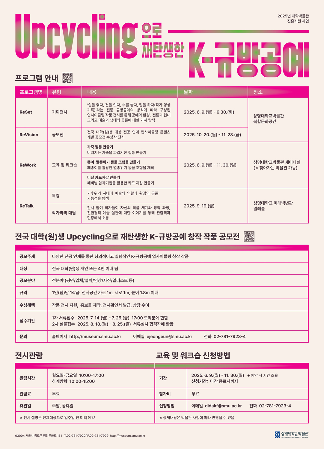 상명대학교박물관에서 2025년 대학박물관 진흥지원 사업의 일환으로 <Upcycling으로 재탄생한 K-규방공예> 를 진행합니다.