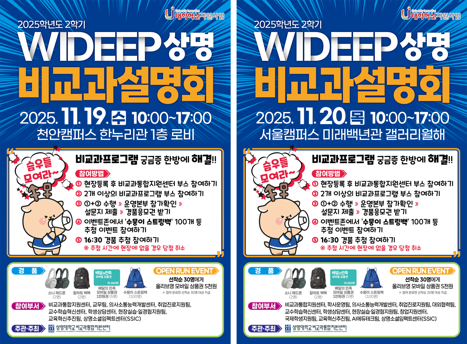 상명 [학생생활] 🎊[비교과통합지원센터] 2025-2 WIDEEP상명비교과설명회 개최 안내(서울,천안) 🎊 -